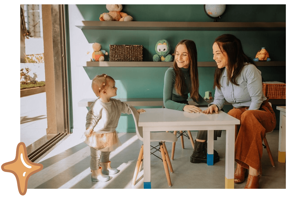 Somos "portas abertas" - as mamães podem entrar e deixar as crianças com as responsáveis, tomar um café conosco a qualquer momento, bater um papo sobre o desenvolvimento com a nossa equipe multidisciplinar e trocar figurinhas sobre a maternidade.
